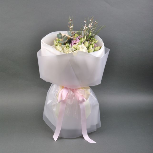 Eustoma, Matiola, Eucalyptus Syneria, rose Sophie spray, Ginestra genista