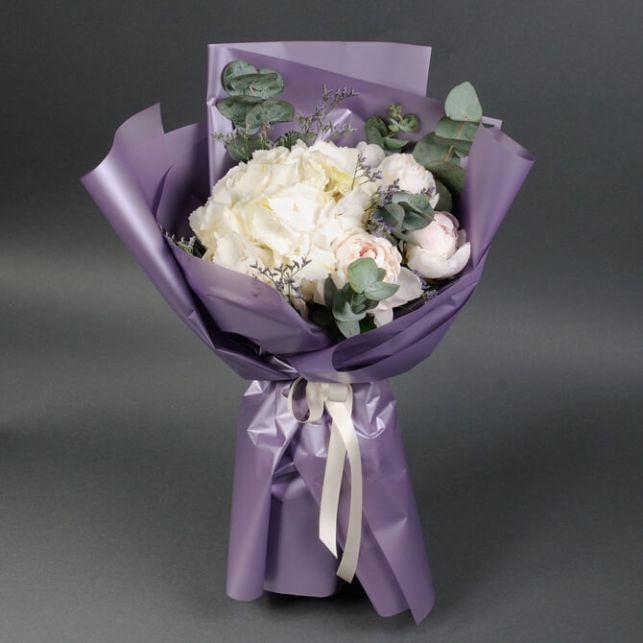 Our bouquet offers you not just flowers but the true embodiment of elegance and tenderness. Hydrangeas add lightness and harmony, while peonies bring notes of luxury and refinement. Each floral bud puts its unique beauty at the center of attention.