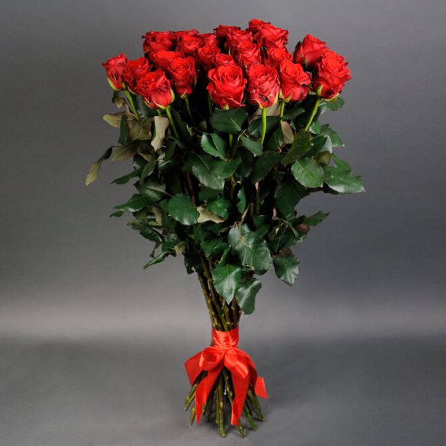 Each rose in this bouquet impresses with its brightness and depth of red color. It's an unparalleled classic symbolizing deep feelings and passion. We take pride in presenting to you this bouquet, an exquisite expression of your tenderness and care.