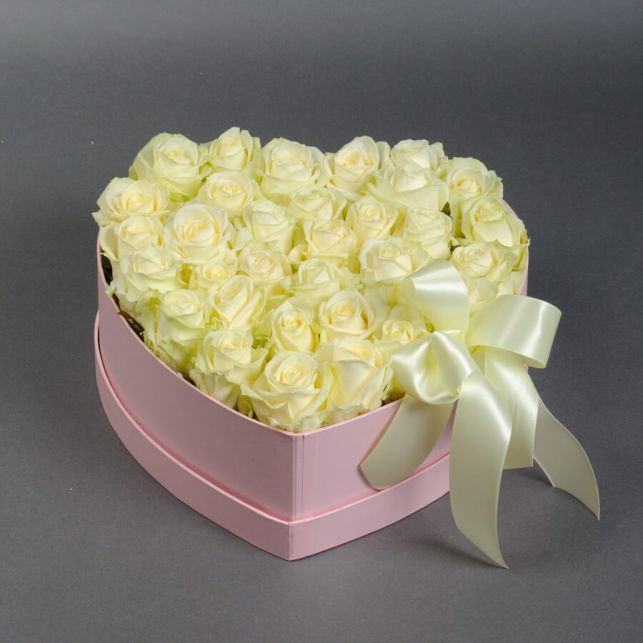 We invite you to delight your loved one with the most tender impressions with our bouquet "Roses Avalanche 'Heart'" in a pink heart-shaped box. Each rose in this bouquet is a unique masterpiece of our own cultivation, which we have prepared for you with love. The snow-white roses arranged in the shape of a heart symbolize purity, tenderness, and deep affection.
