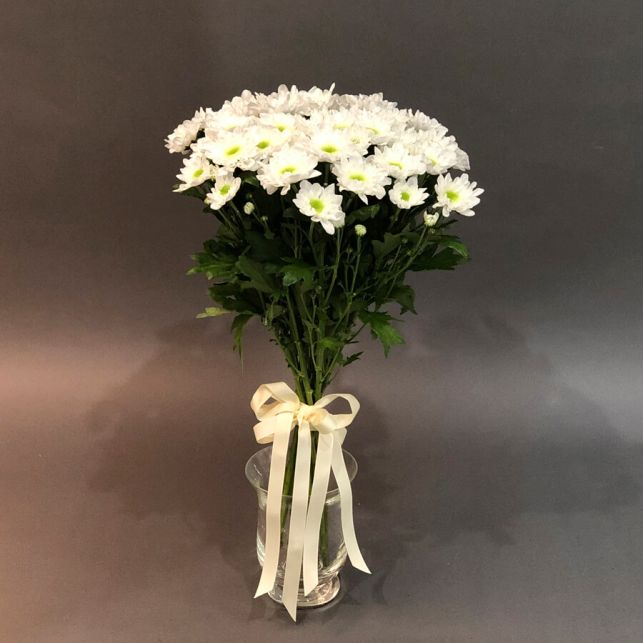 Букет "Белые хризантемы №3" - это выбор людей, которые ценят неизменную классику и изысканность. Эти белые хризантемы символизируют чистоту и нежность. Они создают атмосферу тепла и гармонии, которая добавит вашему помещению особый шарм.