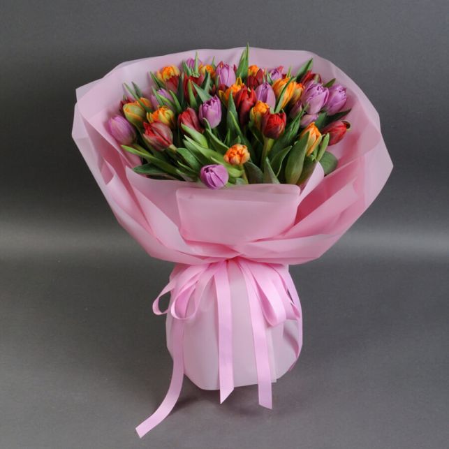 Букет размера M: 35 тюльпанов микс