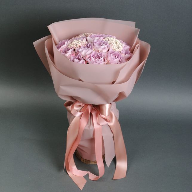 Букет Мемори Лейн поражает своей изысканностью и элегантностью. Каждая роза отличается безупречной формой и насыщенным фиолетовым оттенком. Этот букет создан, чтобы перенести вас в мир красоты и нежности.