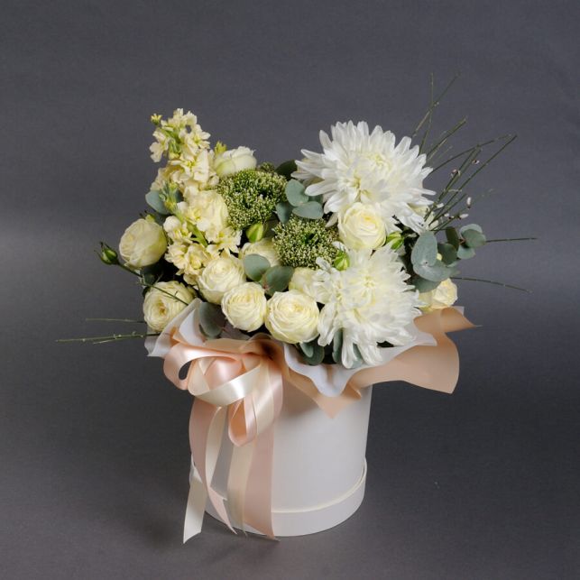 Эта цветочная композиция состоит из самых красивых белых цветов, символизирующих чистоту и нежность. Она прекрасно подходит для различных важных событий в жизни, таких как свадьбы, юбилеи, или просто, чтобы порадовать себя или близких.