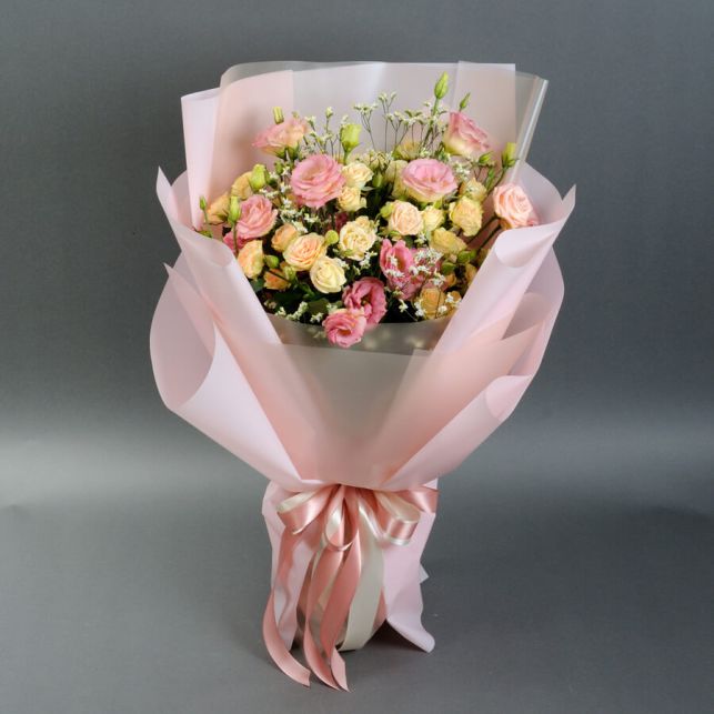 Букет еустом і троянд від магазину Camellia – це справжнє втілення елегантності та краси природи. Кожен еустом і кожна троянда в цьому букеті обрані з особливою ретельністю, гармонійно поєднуючи свої вишукані кольори та форми. Придбавши цей букет, ви вибираєте вишуканість та стиль.