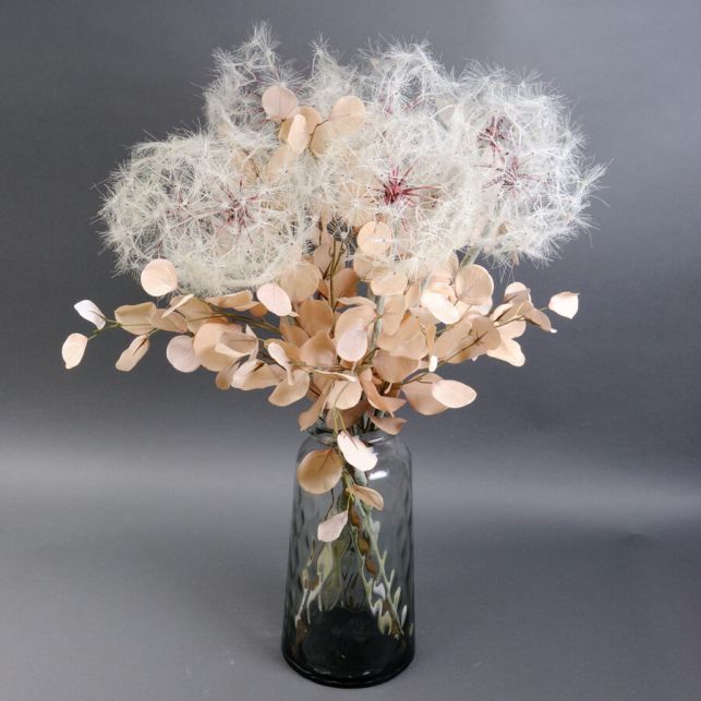 Завітайте до магазину Camellia і відкрийте для себе чарівний світ квітів. Наш букет штучних квітів №4 - це втілення натуральної краси без обмежень сезону. Його склад включає найкращі штучні квіти, привезені від надійних постачальників, що гарантує їх вишуканість та довговічність. У цьому букеті ви знайдете евкаліпт, що надає ароматності, кульбабу - символ чистоти та простоти, а також стильну стрічку, яка додає елегантності композиції. Крім того, до набору входить ваза, яка забезпечить гідне представлення вашого букету. Оберіть якість та бездоганний стиль - оберіть букет штучних квітів №4 в магазині Camellia.