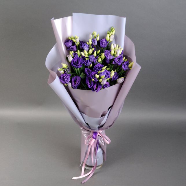 Цей елегантний букет темно-фіолетових еустом вражає своєю красою та вишуканістю. Кожна квітка вибрана з особливою увагою до деталей, щоб створити неповторний букет, який буде виражати ваші почуття найкращим чином. Завдяки високоякісним квітам та вправному виготовленню, цей букет стане чудовим подарунком для будь-якої важливої події у вашому житті.