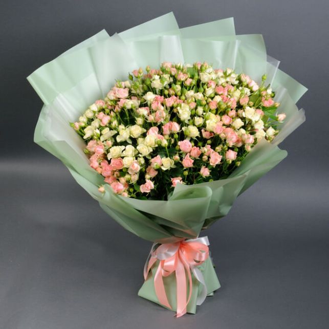 В складі цього букета 29 троянд спрей, серед яких виділяються неперевершені сорти - Пінк Ванесса та Олена. Кожна троянда — як прояв краси та ніжності, що зробить ваші враження незабутніми.