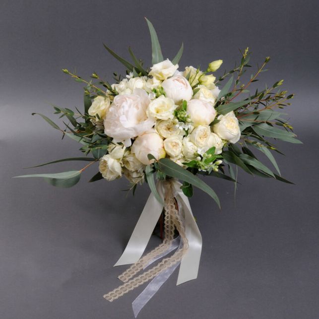 Запрошуємо вас відкрити для себе чарівний букет нареченої з півоніями та трояндою в магазині Camellia! Наш букет - це справжнє шедевр квіткового мистецтва, який дарує відчуття ніжності та романтики. У складі цього букету ви знайдете найкращі сорти півоній, троянди спрей, еустому, оксіпеталум та евкаліпт, які вдало поєднуються, створюючи неповторний образ краси. Купуючи у нашому магазині, ви отримуєте гарантовану свіжість та якість квітів, а також вибір із найкращих сортів, що доступні на ринку. Дозвольте собі подарувати власній нареченій цей витончений букет, і ви обов'язково порадуєте своє серце та душу!