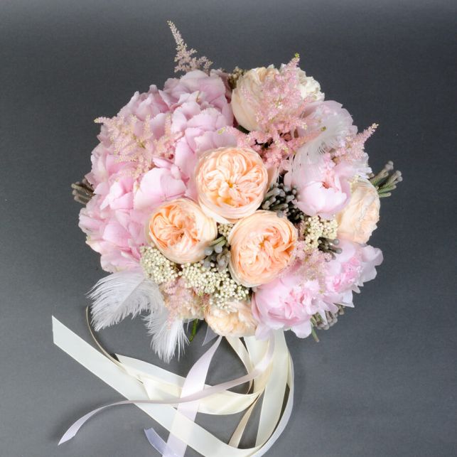 Відчуйте всю красу та ніжність у кожній квітці з нашим букетом нареченої "Рожевий шифон" від магазину Camellia. Цей неповторний букет, виконаний з троянд імпортного вирощування, півоній, гортензії, зелені та екзотичних квітів, стане втіленням вашої ніжності та елегантності у день весілля.
