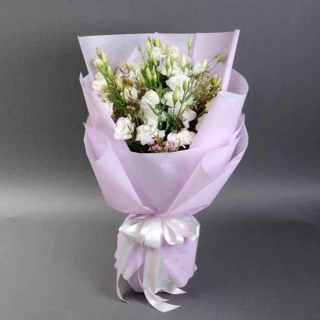 - Якість квітів: Всі наші букети складаються з вибіркових квітів, серед яких особливе місце займає еустома. Вона вражає своєю витонченістю та довговічністю.