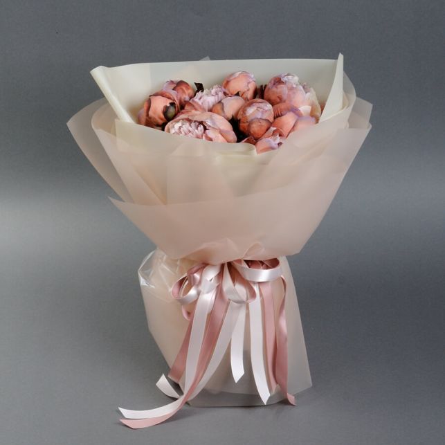 Неповторний букет з 9-ти півоній Брауні в стильним дизайнерським упаковці.