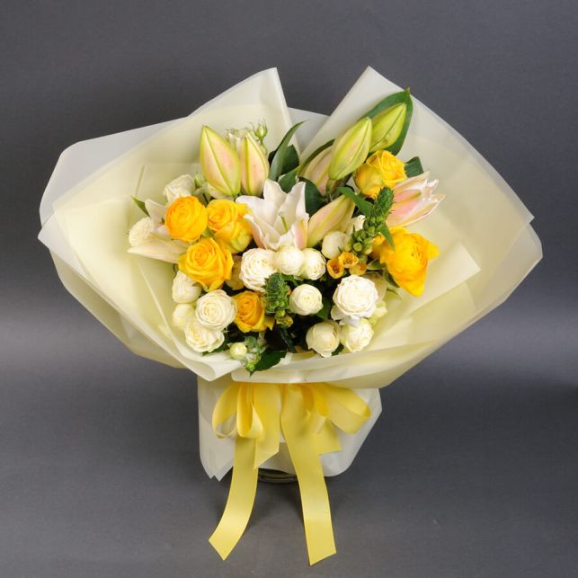 Camellia - ваш найкращий вибір для вишуканих квіткових композицій. Представляємо вам букет "Sunny" - справжнє творіння природи, яке несе в собі атмосферу радості та світла. Цей букет вражає своєю гармонією кольорів та свіжістю кожного бутону.