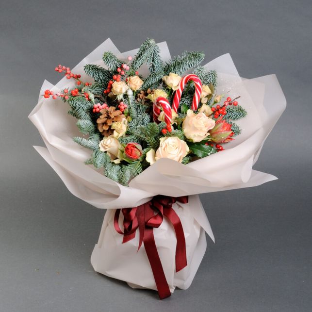 Магазин Камелія радо вітає вас у світі чарівного новорічного настрою! Наші букети - це поєднання свіжих квітів та чарівного новорічного декору, яке подарує вам неповторну атмосферу свята.
