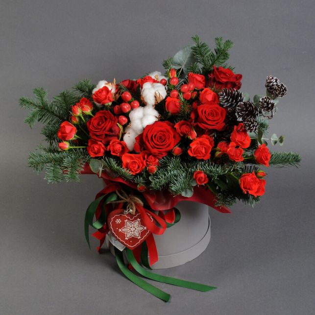 Магазин Камелія пропонує вам відчути чарівну атмосферу святкування новорічних свят з нашою композицією "Фіаніт". Ця чудова композиція - це поєднання краси та елегантності свіжих квітів разом з вишуканим новорічним декором, що створює неповторну атмосферу святкового настрою.