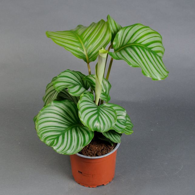 Калатея не потребує складного догляду, що робить її ідеальним вибором для тих, хто хоче додати зелень у свій простір без зайвих зусиль. Вона чудово адаптується до умов приміщення, не вимагаючи особливого освітлення чи частого поливу. Достатньо тримати її у вологому середовищі та забезпечити регулярний, але не надмірний полив, і Калатея порадує вас своїм здоровим виглядом протягом багатьох років.