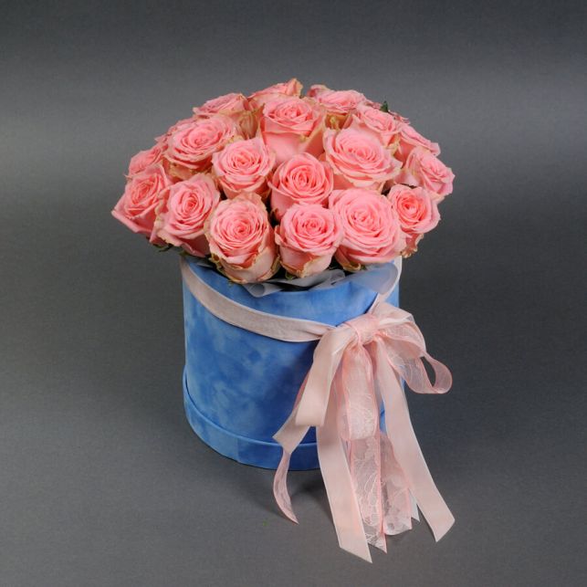 Композиція з трояндами Софі Лорен у коробці від магазину Camellia - це вишуканий подарунок, який надихає на найкращі почуття. Квіти цієї троянди, вирощені власноруч, вражають своєю неповторною красою та свіжістю. Букет, представлений в блакитній коробці, виглядає дуже елегантно та стильно.