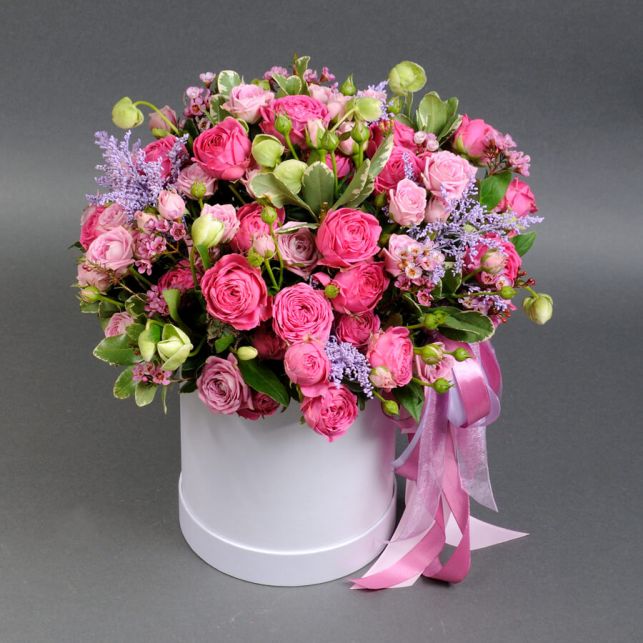 У магазині Camellia ви зможете знайти найкращі композиції квітів, які дарують незабутні миті радості та кохання. Один з наших найпопулярніших варіантів - це композиція "Романтик". Вона представлена в капелюшній коробці із вишуканими трояндами спрей Місті Бабблз, що надають неповторного аромату та елегантності. Крім того, в композиції використовуються фітоспорум, солидаго, хелеборус та хамелаціум, що робить її особливою та унікальною. Придбавши цей товар у нашому магазині, ви отримаєте гарантовану якість квітів та сервіс на найвищому рівні.