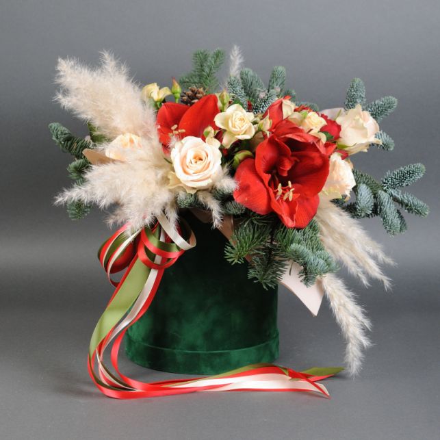 Композиція "Зимовий вальс" від магазину Камелія - це витончена поєднання троянд та амарилісів, представлена у вишуканій оксамитовій коробці. Наш магазин гарантує вам тільки найвищу якість квітів, тому що ми прагнемо, щоб ваші емоції від отримання подарунку були неповторними та незабутніми. Ця композиція - ідеальний варіант для створення атмосфери зимового свята, будь то подарунок для близької людини чи прикраса вашого власного приміщення. У нашому магазині ви знайдете широкий вибір новорічного декору, що допоможе створити особливу атмосферу свята. Ми пишаємося свіжістю та різноманіттям наших квітів, завжди намагаючись забезпечити вам найкращі ціни. Придбавши "Зимовий вальс" у Камелії, ви оберете красу та якість у одному подарунку!