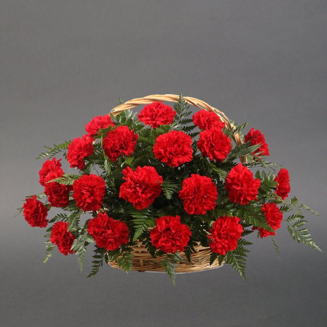 Кошик червоних гвоздик траурний від магазину Camellia - це вишукана композиція, що викликає теплі почуття й виражає глибоке співчуття. Кожен цвіт у цьому кошику - вираз вдумливості та розради. На відміну від звичайних квіткових букетів, наш кошик складається з червоних гвоздик, які символізують теплоту та співчуття у найтяжчі моменти.