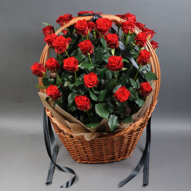 Кошик троянд "Марічка траурний" від магазину Camellia - це витончений вибір для виразного висловлення співчуття та підтримки у важку мить. Кожна троянда в цьому кошику - це шедевр власного вирощування, який вражає своєю свіжістю та вишуканістю. Завдяки нашому магазину, ви можете бути впевнені в якості квітів та вишуканому дизайні. Придбавши цей кошик, ви не лише підкреслите свою турботу та увагу до оточуючих, але й отримаєте гарантовану якість і задоволення від кожного бутону троянди.