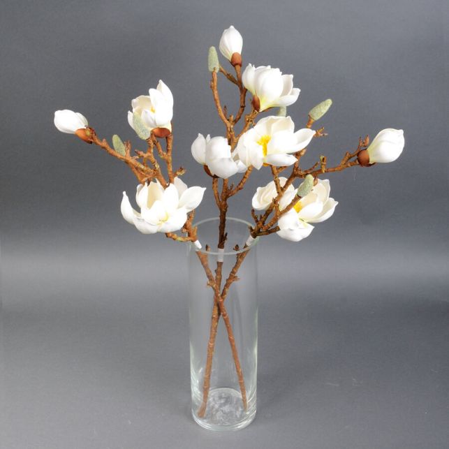 Завітайте до магазину Camellia і порадуйте себе вишуканою штучною магнолією. Гілочки магнолії у вазі — це відмінний спосіб прикрасити ваш інтер'єр затишними нотками природи. Виготовлені з високоякісних матеріалів, ці штучні квіти мають природну форму і колір, що додає їм реалістичності. Придбавши цей товар у нашому магазині, ви можете бути впевнені в його високій якості та тривалості. Пориньте у світ краси та гармонії разом з Camellia!