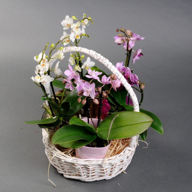 У магазині Camellia ви можете придбати чудову композицію міні орхідей у корзинці. Цей мікс фаленопсисів не лише додасть вашому приміщенню елегантності, але й порадує вас тривалим цвітінням. Орхідеї, які ми пропонуємо, походять від найкращих постачальників, гарантуючи вам високу якість та довговічність квітів. Придбавши цю композицію в Camellia, ви отримаєте не лише чудовий акцент для свого інтер'єру, а й впевненість у якості продукції.