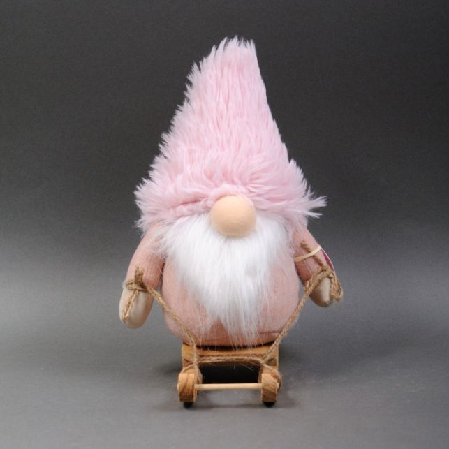 Новорічні прикраси м'яка іграшка "Гном на санчатах з LED-підсвічуванням" в асортименті, 27 см сіра і рожева. Бренд Bonadi.