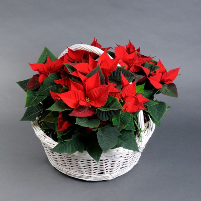 Сезонна кімнатна рослина Пуансеттія (Різдвяна зірка) у кошику