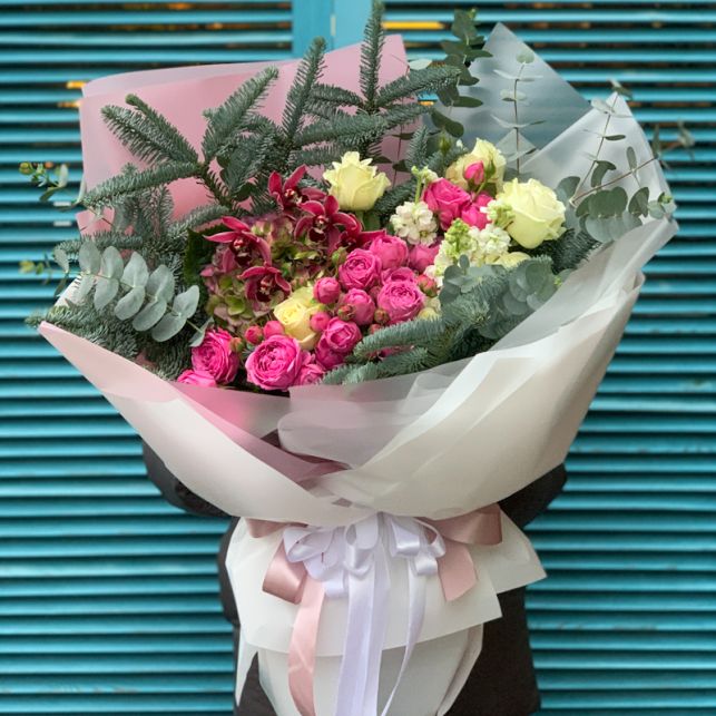 Зимовий букет з гілками ялини і трояндами від магазину Камелія - це чудовий подарунок для створення неповторного святкового настрою в будь-який дім. У нашому магазині ви знайдете найвищу якість квітів, таких як Нобіліс, матіола, троянда Аваланч, піоноподібна троянда Місті Бабблз, орхідея Цимбідіум, евкаліпт, які гармонійно поєднуються в цьому букеті. Ми гордимося свіжістю та довговічністю наших квітів, які додають унікальний шарм цьому зимовому букету. Наш магазин пропонує широкий вибір різноманітного новорічного декору, щоб створити атмосферу свята та радості. Крім того, ми прагнемо забезпечити доступні ціни на наші товари, щоб кожен міг порадувати себе та близьких елегантним букетом. Запрошуємо відчути чарівність зимових свят разом з Камелія!